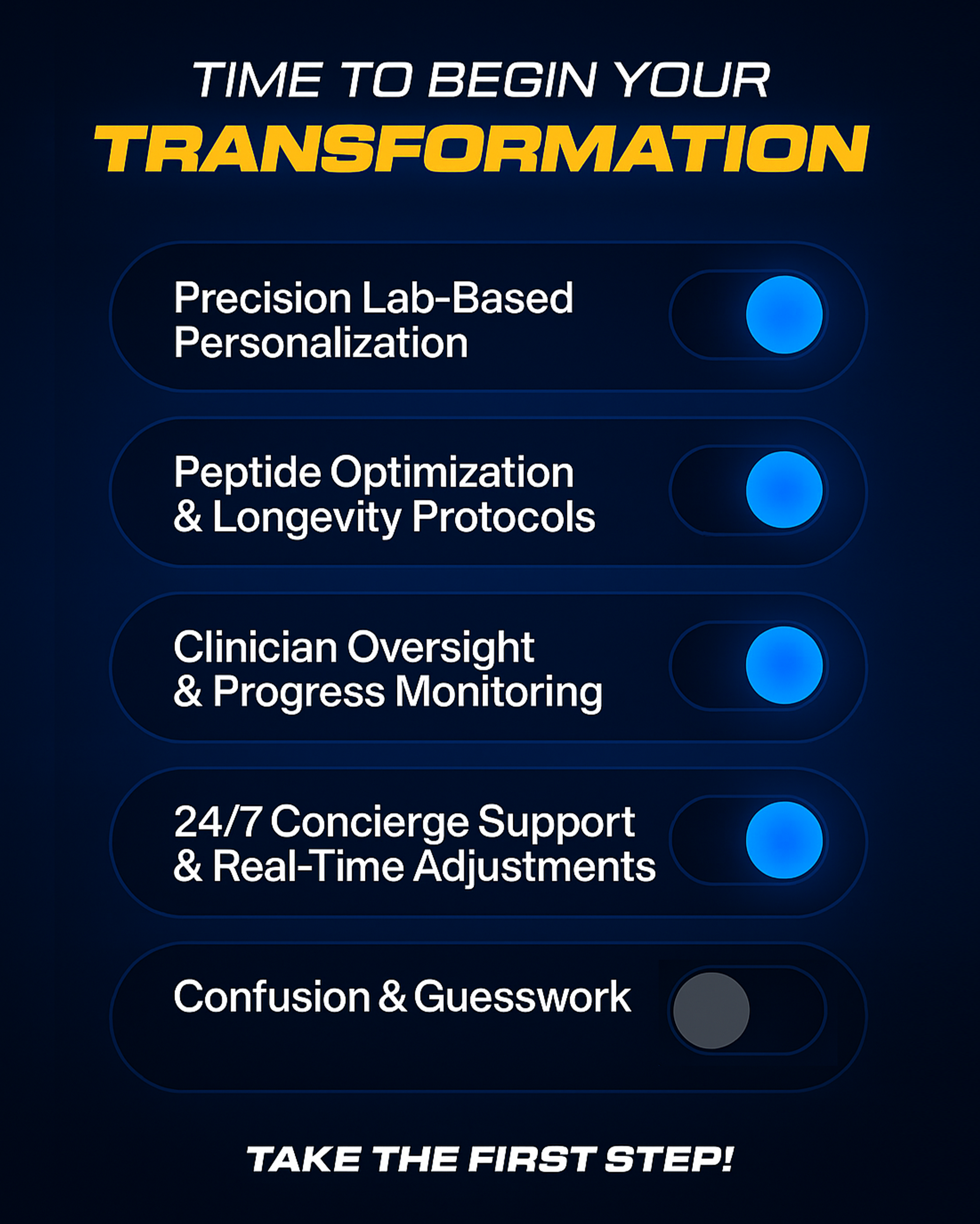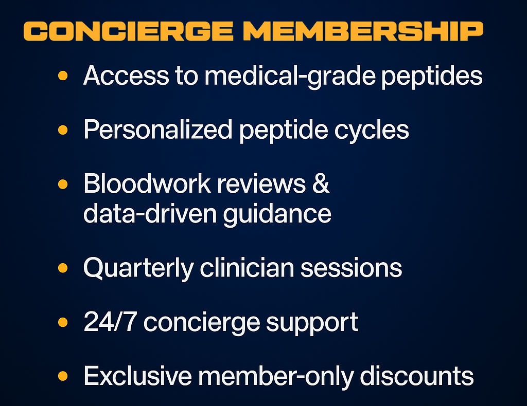 Unlock premium access to pharma-grade peptides, personalized lab analysis, and expert hormone optimization — all delivered through a private, 24/7 concierge experience.